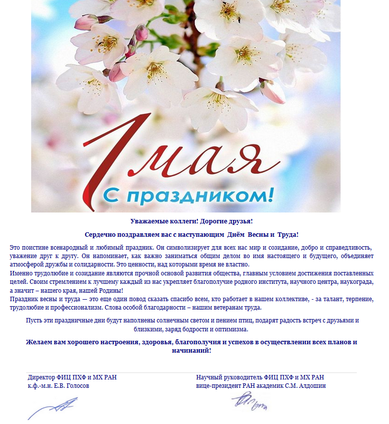Приглашаем вас 7 мая на Торжественное заседание Ученого совета ФИЦ ПХФ и МХ РАН, посвящённое этому великому дню и праздничный концерт и угощение солдатской кашей.