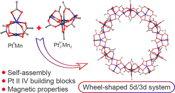 В области координационной химии полиядерных комплексов произошло знаковое событие: международная группа исследователей из Института общей и неорганической химии им. Н.С. Курнакова РАН (Москва), Федерального исследовательского центра проблем химической физики и медицинской химии РАН (Черноголовка) и Киотского университета (Япония) сообщила о синтезе и структурной характеристике первого гетерометаллического кластера в форме колеса, объединяющего центры платины и марганца.